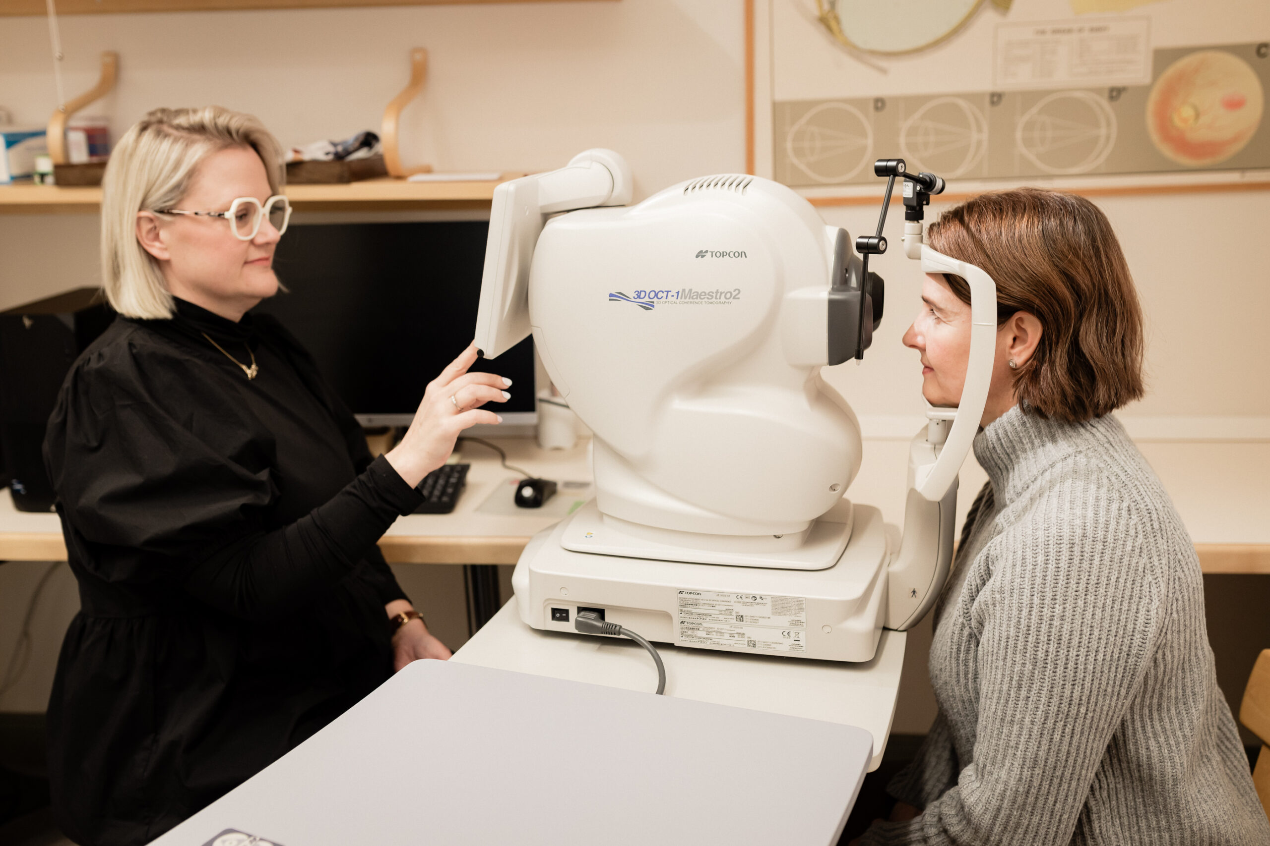 Tämän jälkeen tutkimus jatkuu mikroskoopilla, jolla selvitetään esimerkiksi silmän pinnan, eli sarveiskalvon terveydentilaa. Lisäksi mitataan kyynelnesteen haihtuvuus siihen tarkoitetulla laitteella.